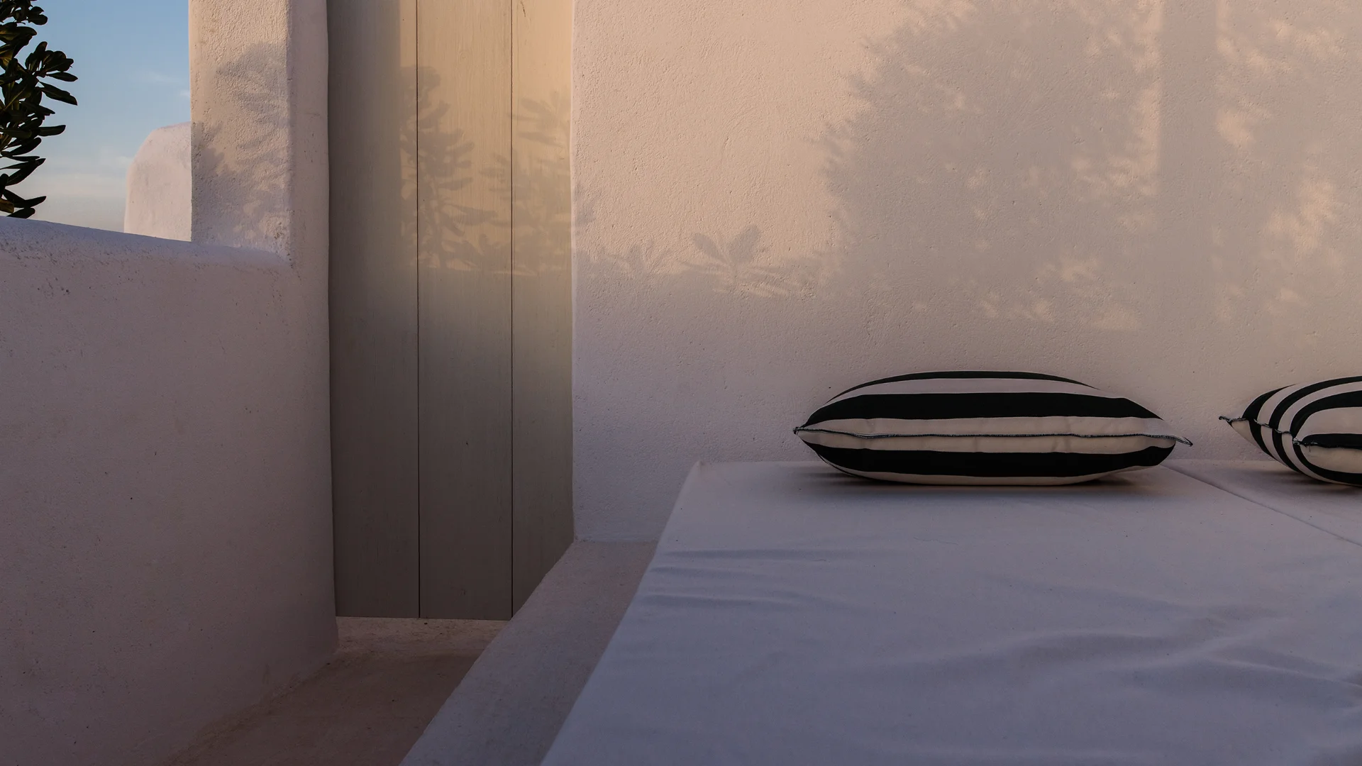 En Can Domo hemos conservado la arquitectura tradicional ibicenca y conservando todo su encanto: piedra, muros anchos y encalados, puertas y bigas de madera de sabina.
