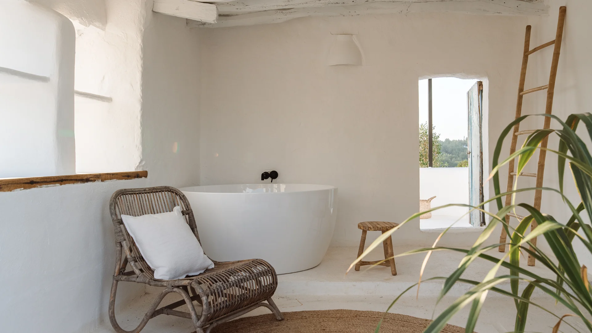 Nuestra habitación más importante, situada en un segundo piso, domina la finca con vistas a ibiza. Cuenta con una habitación en suite y dos terrazas privadas. La bañera en una de las terrazas para ver el atardecer es un sueño.